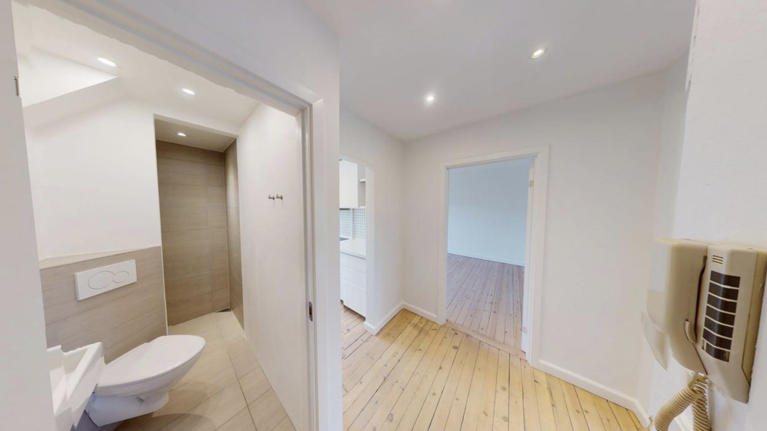 Lejligheden er renoveret med et stilfuldt køkken og badeværelse, der understøtter den moderne komfort. Der er desuden en ny og moderne vaskekælder til beboernes brug.